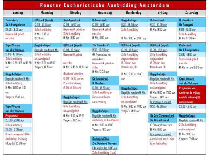 Eucharistische Aanbidding wordt georganiseerd. Dit rooster is aan